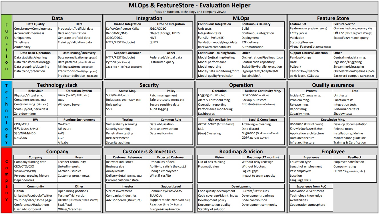 FeatureStore (with MLOps) is important part of ML/AI ecosystem. We can help with on-boarding, PoC, RFx and delivery. It is typically about: